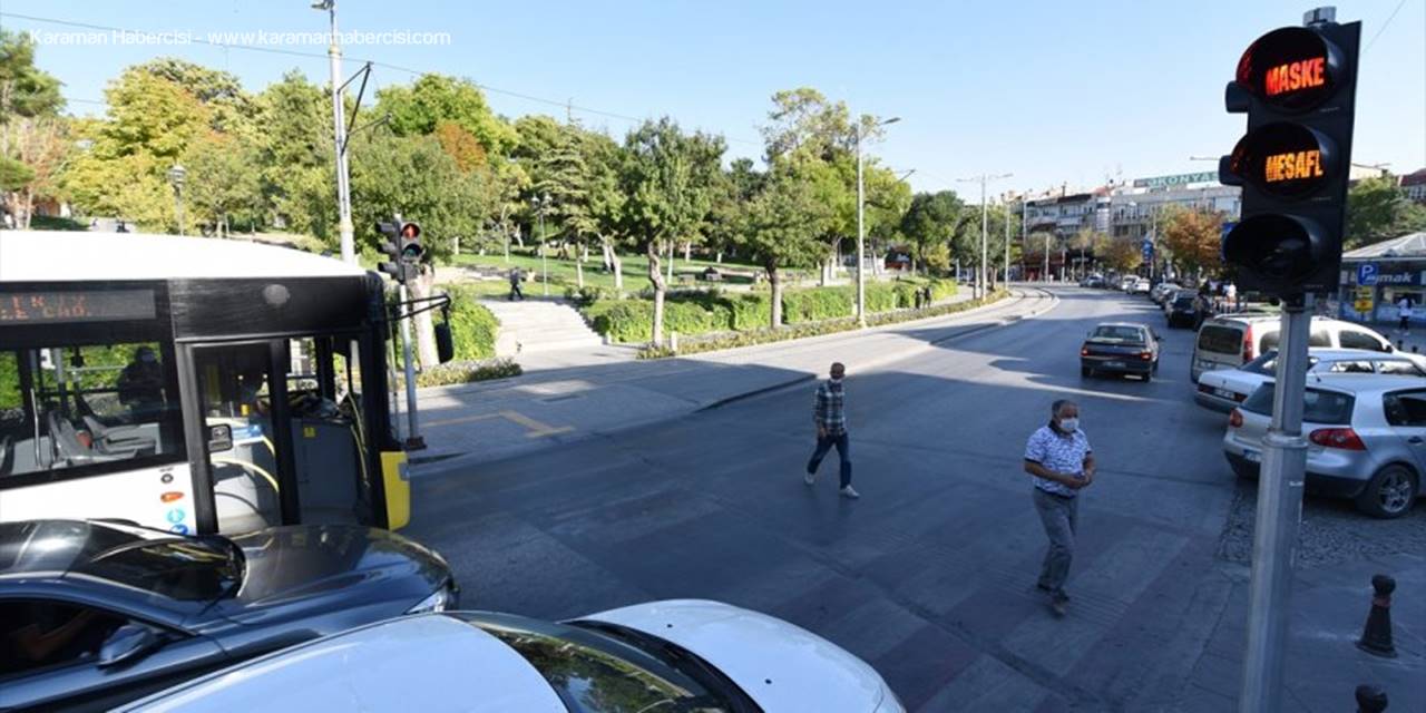 Konya'da Trafik Işıklarıyla Kovid-19 Uyarısı