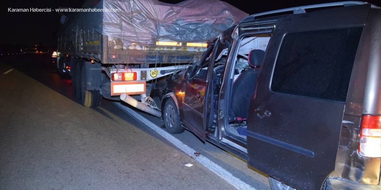 Alınan bilgiye göre, Mehmet Özcan yönetimindeki 42 DPM 98 plakalı hafif ticari araç, Kulu-Konya kara yolunun 27. kilometresinde aynı yönde giden Muzaffer Y. idaresindeki 06 SFB 35 plakalı tıra arkadan çarptı.