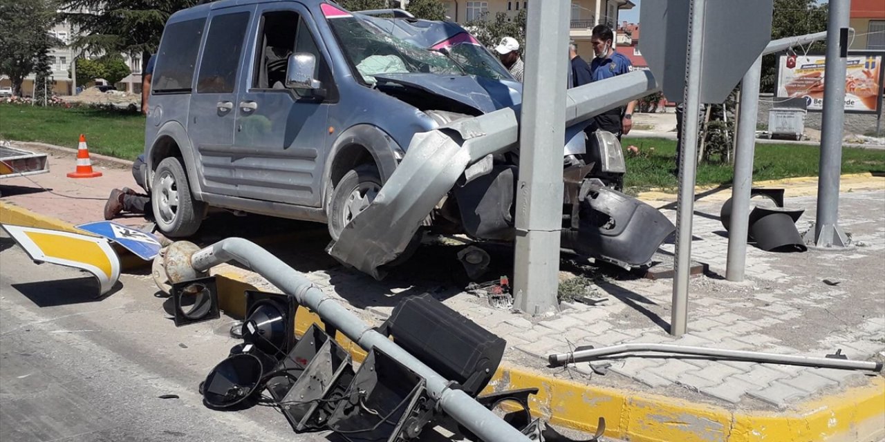 Ahmet Alptekin (22) idaresindeki 42 ADM 66 plakalı hafif ticari araç, Alparslan Mahallesi Kavşağında sürücüsünün direksiyon hakimiyetini kaybetmesi sonucu önce refüje çıkarak aydınlatma direğine, ardından trafik lambasına çarptı.