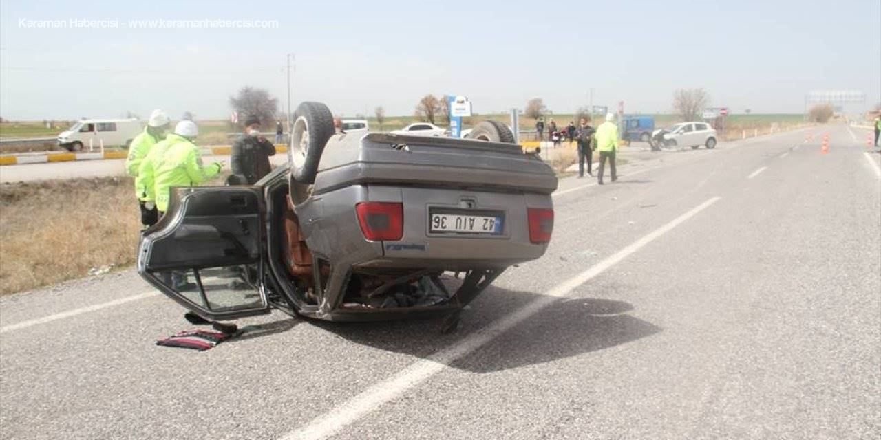 Kazada, 42 AIU 36 plakalı otomobil kavşakta devrilerek ters döndü.