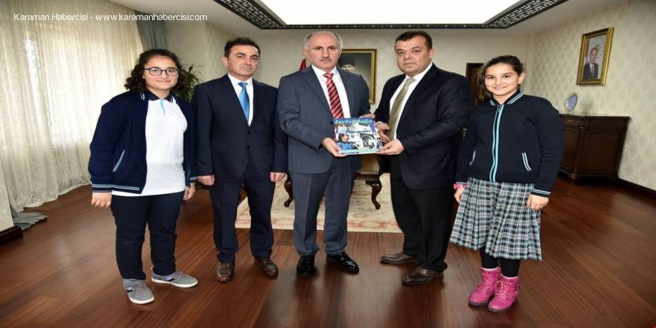 Vali Fahri Meral, İbrahim Bey İlkokulu ve Ortaokulu eğitim kültür dergisi olarak yayın hayatını sürdüren Leylek Baba Dergisi yönetimini makamında kabul etti.