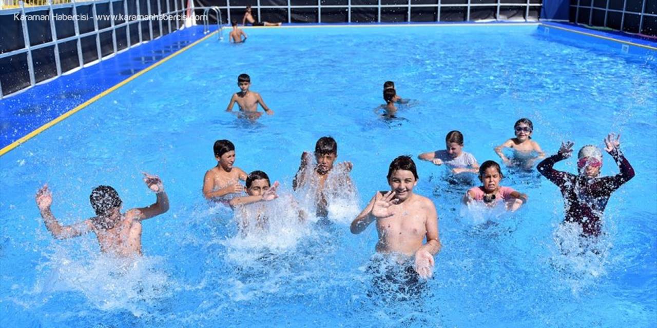 Mersin'de Çocuklar Okullardaki Seyyar Havuzlarda Eğlenerek Yüzme Öğreniyor