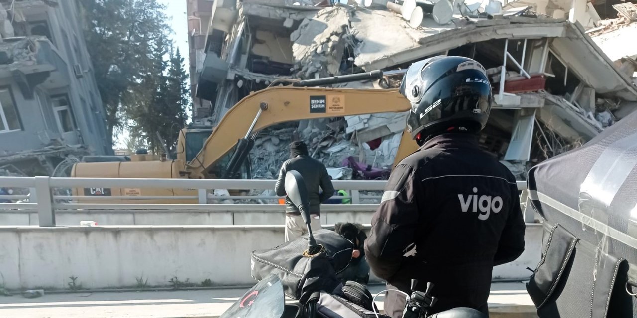 Farklı kurye markalarından yüzlerce kuryenin gittiği deprem bölgesinde gönüllü olarak yer alan moto kuryelerden Vigo kuryesi İbrahim Kaplan, depremin ardından böyle bir ihtiyacın olduğunu görünce arkadaşlarıyla birlikte deprem bölgesine gitmek için hazırlık yaptıklarını söyledi. Kaplan, "Depremin hemen ardından bir kamyon ayarladık ve motosikletlerimizi gönderdik. Biz de otobüse binerek deprem bölgesine ulaştık. Yaklaşık bir haftadır yardımların toplandığı merkezlerden depremzedelere yardım kolilerini ulaştırmak için arkadaşlarımızla birlikte gönüllü olarak çalışıyoruz. Başta köyler olmak üzere yardımların ulaştırılmasında zorluk yaşanan yerlere ilaç, erzak, soba, battaniye, su yani neye ihtiyaç varsa taşımaya çalışıyoruz. Bu süreci hep birlikte aşmak için omuz omuza verdik" dedi.