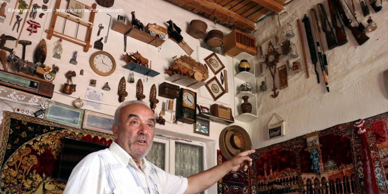 "Nerede denk gelirse kimden bulduysam bu eserleri aldım. Burada bir eser var. Demir kayış. Bunun için bir evin çatısını bir gün çalışarak tamir ettim ve bu eseri öyle satın aldım. Yeni nesle sorsak kağnı nasıl olur desek bilmez. Eskinin saklama kapları, çömlek, küp, gaz lambası, çıra, lüks, el lambası gibi birçok eser var salonumda. Tarihi, evimin içine sığdırdım. Birçok kişi evime gelip bu eserleri istiyor ama vermiyorum. Evimin salonunda fazla yer kalmadı. Kış günü çok gelen oluyor. Oturuyoruz burada, çayımızı içip sohbet ediyoruz."