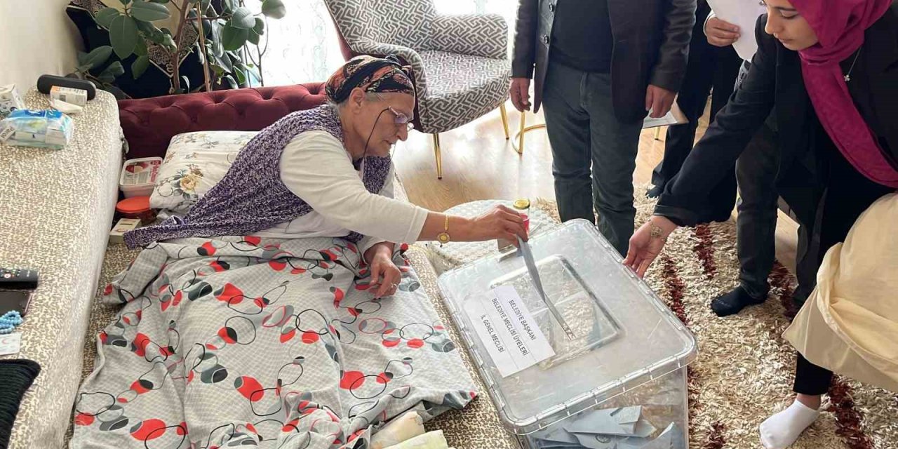 Niğde'de başvuruları önceden kabul edilen yatalak hasta seçmen, 31 Mart 2024 Mahalli İdareler Genel Seçimleri için belirlenen 1 seyyar sandıkta evlerinde oy kullandı.