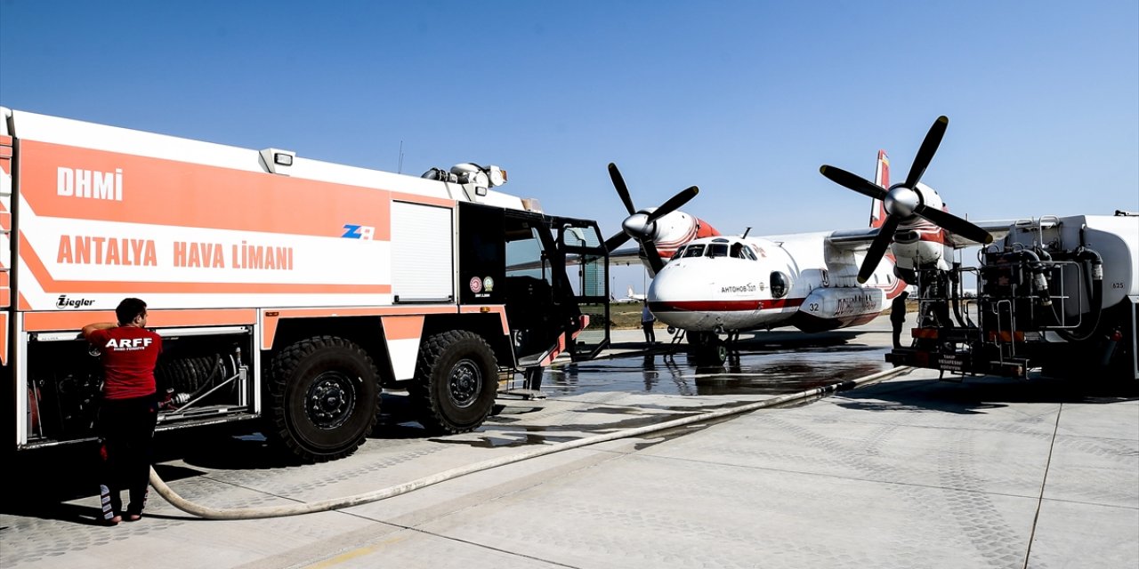 Antalya'daki orman yangınlarının kontrol altına alınması amacıyla yürütülen çalışmalara havadan destek veren Ukrayna'dan gelen AN-32 P tipi yangın söndürme uçağı ekibi gün boyunca müdahalesine sürdürüyor.