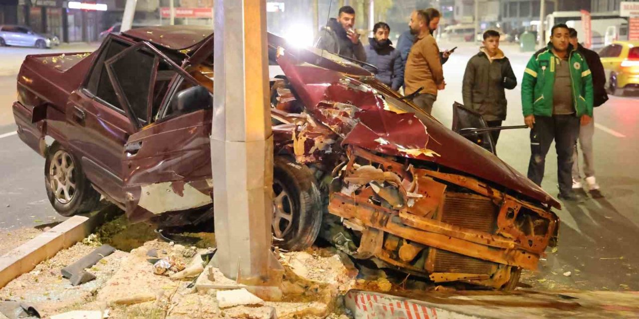 Aksaray'da 2 otomobilin çarpıştığı kazada kontrolden çıkan otomobil aydınlatma direğine çarparak durabilirken adeta hurdaya dönen otomobilde bulunan...