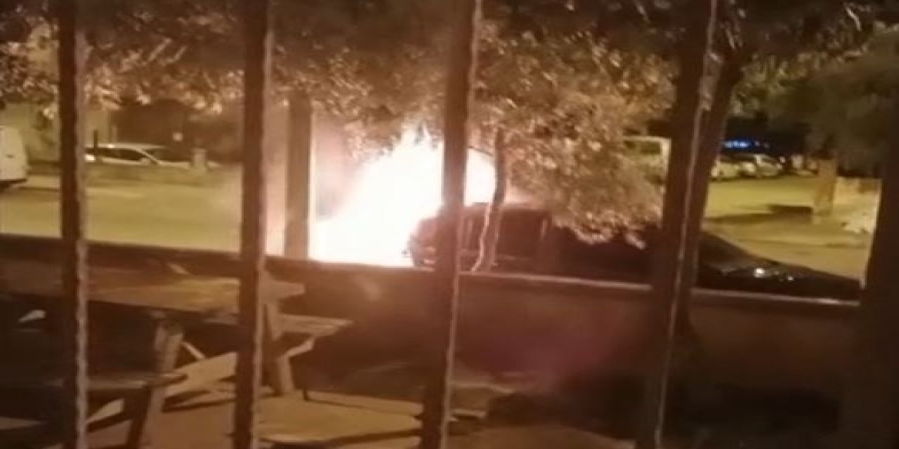 Antalya'da bir apartmanın önünde park halinde bulunan otomobil alev alev yandı.