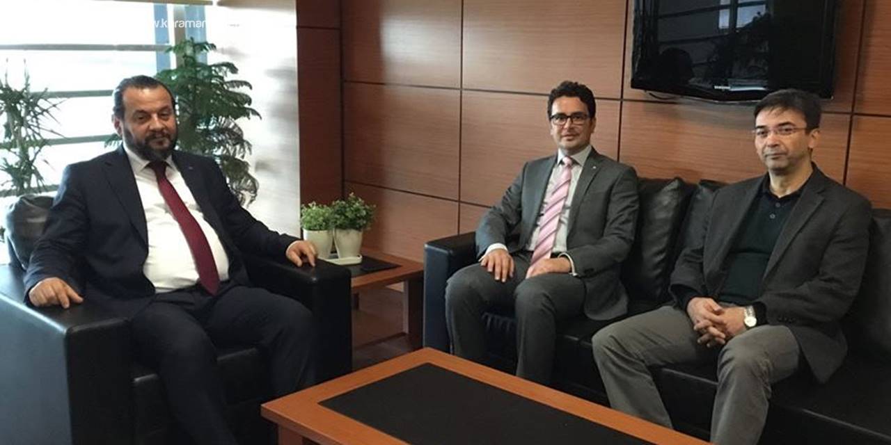 Karamanoğlu Mehmetbey Üniversitesi Rektörü Prof. Dr. Mehmet Akgül ve Rektör Yardımcısı Prof. Dr. Birol Üner Karaman Ticaret ve Sanayi Odası Yönetim Kurulu Başkanı Mustafa Gökhan Alkan'ı makamında ziyaret ettiler.