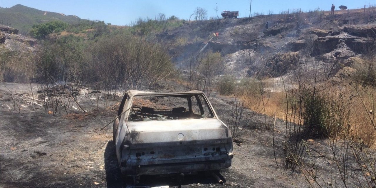 Yangında çalılık alan, zeytin ağaçları, mezarlıkta bulunan bazı ağaçlar ile otomobil zarar gördü.