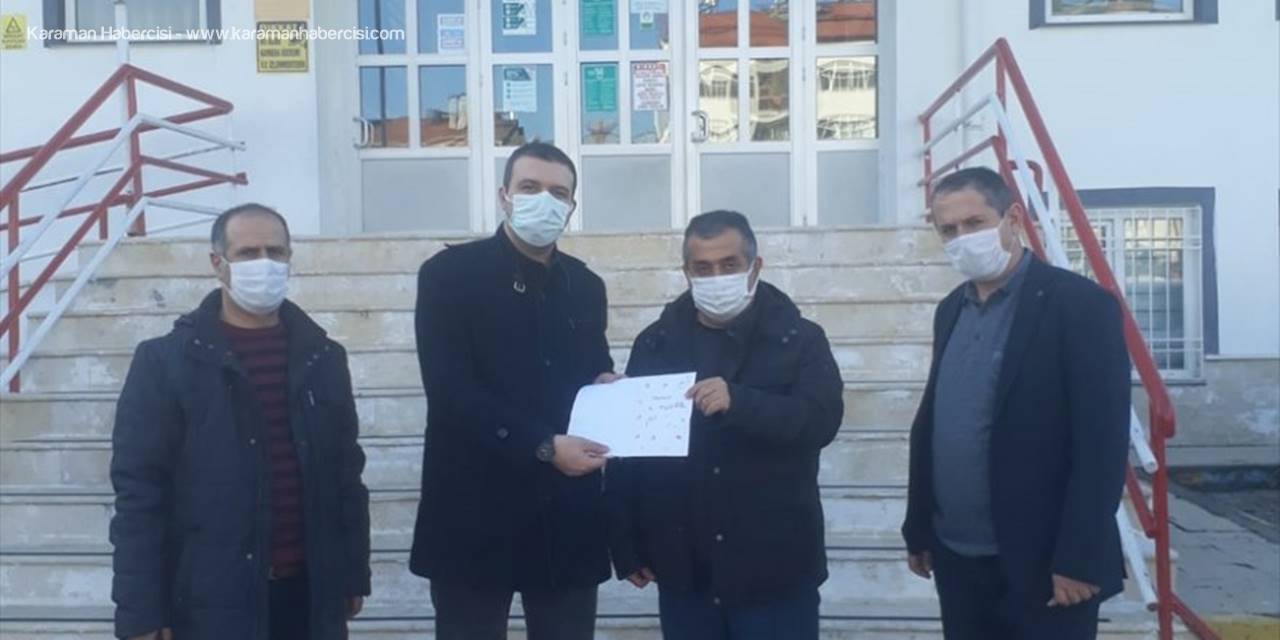 Öğrenciler, Seydişehir'de görev yapan 213 sağlık çalışanı için kendi el yazıları ile yazdıkları yeni yıl tebrik kartlarını, Okul Müdürleri Yasin Öşekçi'ye teslim etti.