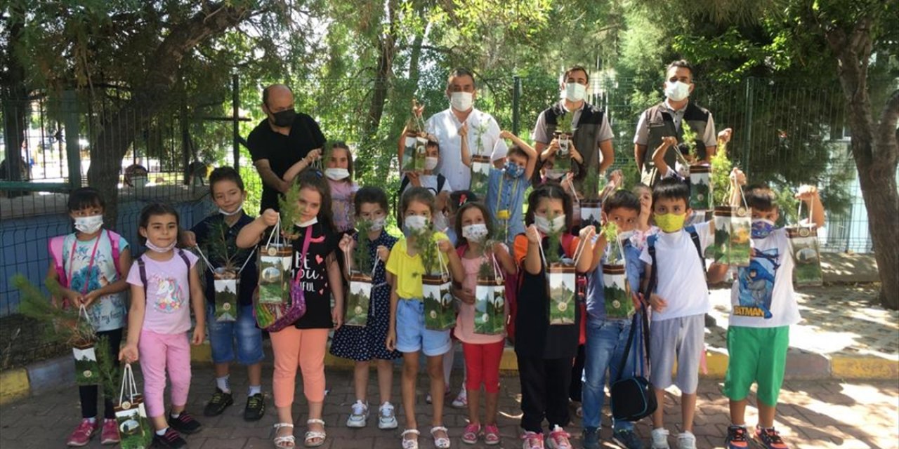 Konya’nın Seydişehir ilçesinde okul öncesi ve birinci sınıfa başlayan 280 minik öğrenciye, okul idaresi Seydişehir Orman İşletme Şefliği tarafından fidan hediye edildi.