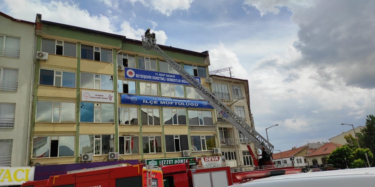 Konya'nın Seydişehir ilçesinde 5 katlı bir binanın çatısında çıkan yangın, itfaiyenin müdahalesiyle büyümeden söndürüldü.
