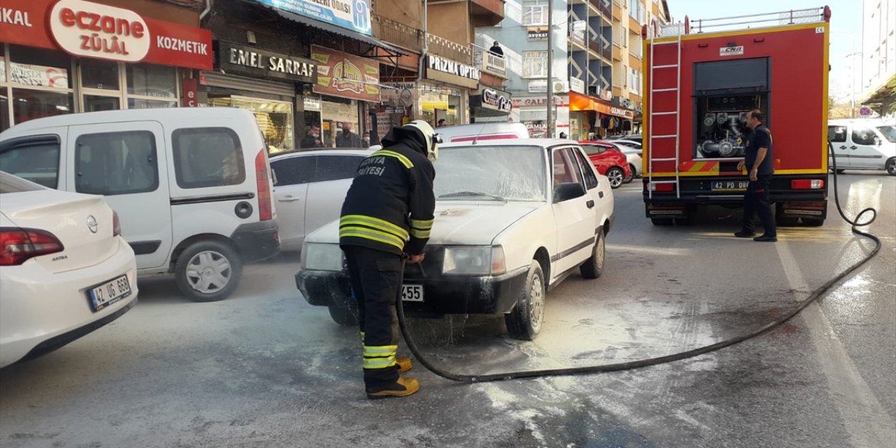 Şeref Arslanoğlun idaresindeki 42 ZK 455 plakalı otomobil, Hürriyet Caddesi'nde seyir halindeyken aniden yanmaya başladı.