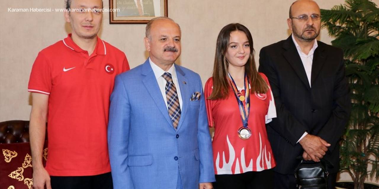 Başarılı sporcu Sümeyye Boyacı ise Büyükerşen'i, gelecek ay Rusya'nın başkenti Moskova'da açacağı ebru sergisine davet etti.