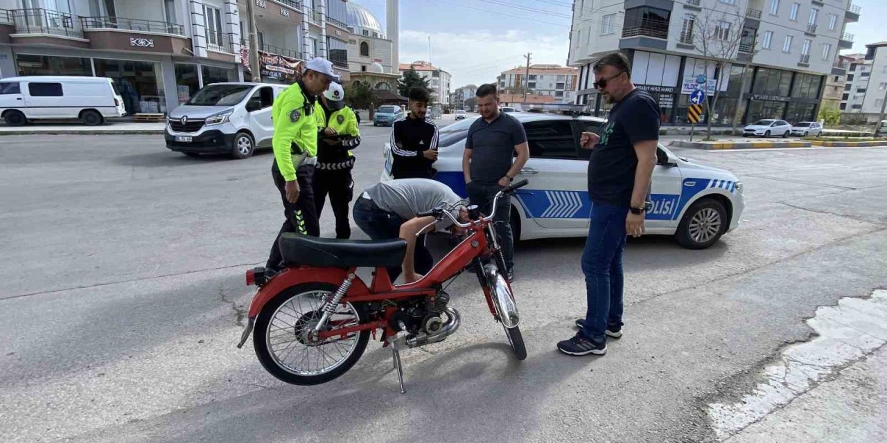 Aksaray'da trafik ekiplerinin durdurduğu plakasız ve aynasız motosikletin kasksız olan sürücüsüne 26 bin 965 lira ceza kesildi.