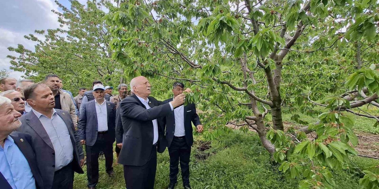 Türkiye Ziraat Odaları Birliği (TZOB) Genel Başkanı Şemsi Bayraktar, Konya'nın Akşehir ilçesinde zirai dondan etkilenen kiraz bahçelerinde incelemelerde bulundu.