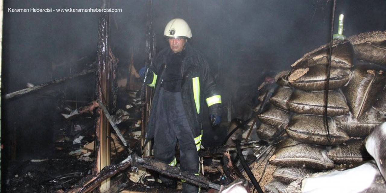 Karaman’da bir hububat ve bakliyat dükkanında çıkan yangında yaklaşık 500 bin lira maddi hasar oluştu