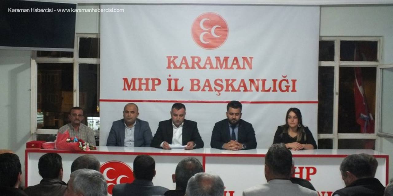 Kısacası Milliyetçi Hareket Partisi Karaman il teşkilatı olarak önümüzdeki süreçte; yapacağımız her işi toplumun her katmanından kitlelerle görüşerek, ben yaptım oldu anlayışıyla değil, istişare ederek çoğunlukla yapacağız. Kapımız da gönlümüz de tüm ülküdaşlarımıza ve hemşerilerimize açıktır.’’