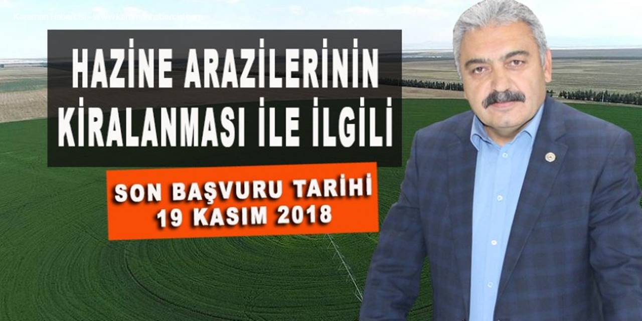 Karaman Ziraat Odası Başkanı Recep Muğlu; Hazineye ait Tarım Arazilerinin kullanıcılarına kiraya verilmesi hakkındaki son Başvuru tarihi 19 KASIM 2018 Belediye ve Mücavir Alan sınırları içindeki Hazineye ait Tarım Arazilerinin Satışı için Başvuru tarihi
