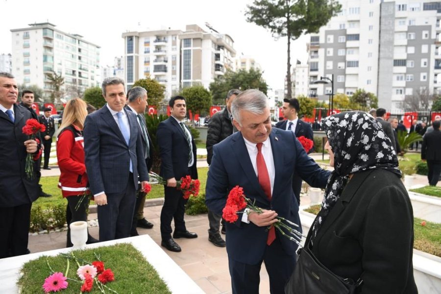 Vali Ersin Yazıcı, 18 Mart Şehitleri Anma Günü ve Çanakkale Deniz Zaferi'nin 108'inci Yıldönümü münasebetiyle Uncalı Şehitliği'ndeki törene katıldı. Törene Vali Yazıcı'nın yanı sıra Antalya Büyükşehir Belediye Başkanı Muhittin Böcek, Vali Yardımcıları, Kaymakamlar, kurum müdürleri, şehit dernekleri başkanları, sivil toplum kuruluşlarının temsilcileri ile şehit yakınları ve gaziler katıldı. Program saygı duruşu ve daha sonrasında gerçekleştirilen saygı atışı ile başladı. Protokol üyelerinin çelenk sunumuyla devam eden program günün anlam ve önemine dair konuşmanın yapılmasıyla devam etti.