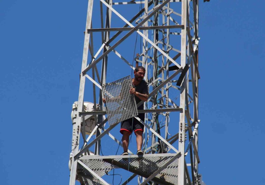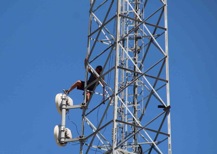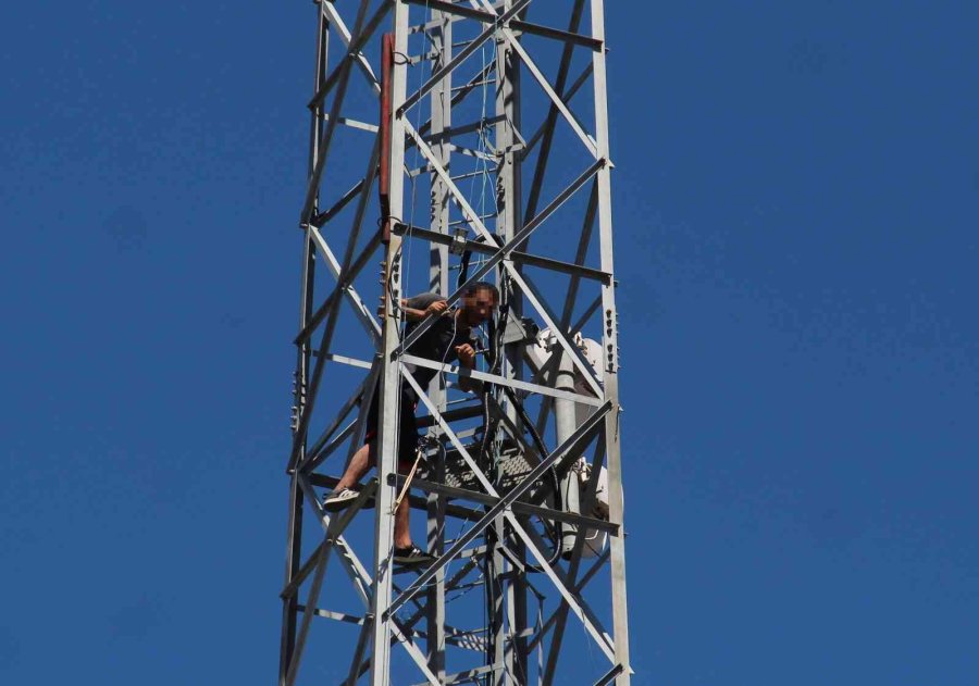 Edinilen bilgiye göre, sabah saat 04.00 sırasında Antalya Büyükşehir Belediyesi Toptancı Hali içindeki baz istasyonuna çıkan bir şahsı gören vatandaşlar durumu 112 Acil Çağrı Merkezi'ne bildirdi. İhbarla bölgeye itfaiye sağlık ve polis ekipleri sevk edildi. Yapılan incelemede şahsın, geçtiğimiz cumartesi günü önce bir AVM'ye ardından, kolejin çatısına ve reklam tabelasına çıkan Yusuf Ç. olduğu belirlendi. Ekiplerin ikna çabalarına yanıt vermeyen Yusuf Ç., baz istasyonunun en uç noktasına kadar çıktı. Burada uykuya geçen Yusuf Ç., sabaha kadar uyudu. Havanın aydınlanmasıyla kendine gelen şahsı, polis ekipleri ikna etmek için yine çaba sarf etmeye başladı.