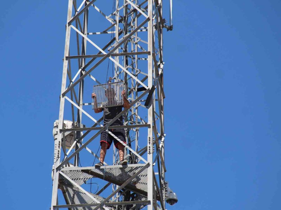 Antalya'da AVM ve kolejin reklam tabelasının ardından bu kez baz istasyonunda 3. kez intihar girişiminde bulunan şahsı, yine kokoreçle ikna etmeye çalıştılar. Baz istasyonuna zarar verip söktüğü parçaları zemine atan şahsın, sıcak havaya rağmen en uç noktadaki eylemine devam ediyor.