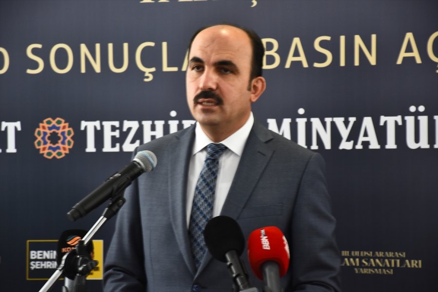 Altay, Konya'nın günümüzde de hat, tezhip, minyatür ve çini gibi sanatların en üst seviyede icra edildiği bir merkez konumunda olduğunu dile getirerek, "Konya'mızda geleneksel olarak düzenlediğimiz Uluslararası İslam Sanatları Yarışması büyük önem arz etmektedir. Bu yıl üçüncüsünü gerçekleştirdiğimiz Uluslararası İslam Sanatları Yarışması'na hat alanında 40, tezhip alanında 38, minyatür alanında 26, çini alanında 50 olmak üzere birbirinden değerli 160 eser katılmıştır. Ağırlığı ülkemizden olmak üzere Cezayir, Endonezya, Irak, İran, Malezya, Mısır ve Suriye'den gelen eserler sergimizde bulunmaktadır." diye konuştu.