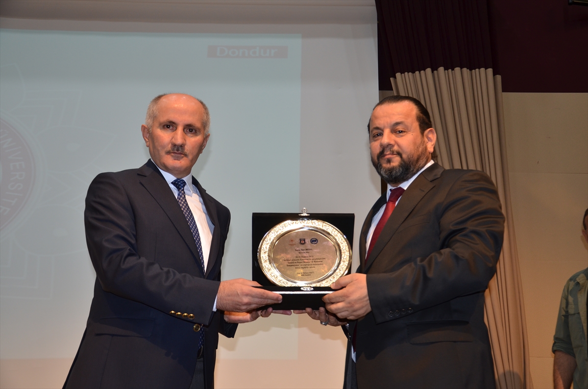 Yapılan konuşmaların ardından Rektör Akgül, Vali Meral'e sempozyuma katkılarından dolayı plaket takdim etti.