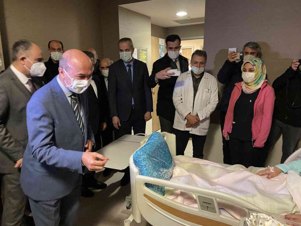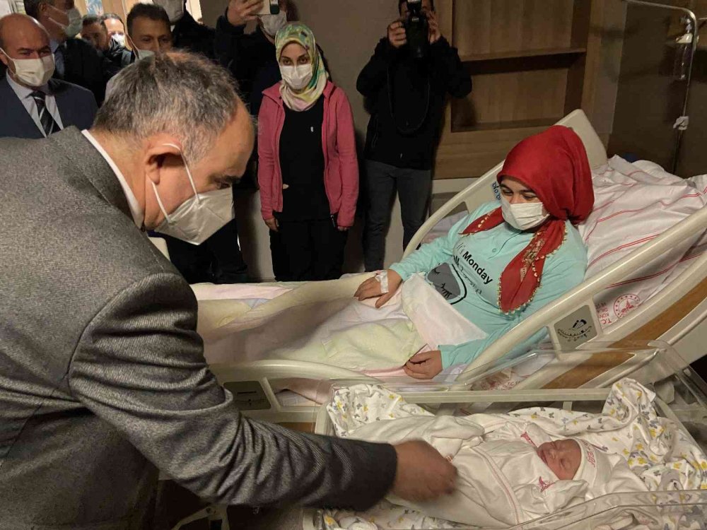 Konya'da Rabia ve Halil Gülcan, 8 yıl bekledikleri Hatice Elif bebeklerine 2022 yılının ilk dakikalarında kavuştu. Doğum sancıları tutan Rabia Gülcan, Dr. Ali Kemal Belviranlı Kadın, Doğum ve Çocuk Hastalıkları Hastanesi'ne gelerek doğumu beklemeye başladı. Sancıları artınca doğum odasına alınan genç anne saat 00.03'de normal doğumla 3 kilo 100 gram ağırlığında bir kız çocuğu dünyaya getirdi. Konya Valisi Vahdettin Özkan, İl Sağlık Müdürü Prof. Dr. Mehmet Koç ve Selçuklu Belediye Başkanı Ahmet Pekyatırmacı da aileyi ziyaret ederek geçmiş olsun dileklerinde bulundu. Vali Vahdettin Özkan ve Ahmet Pekyatırmacı, bebeğe altın takarak hediyelerini takdim etti.