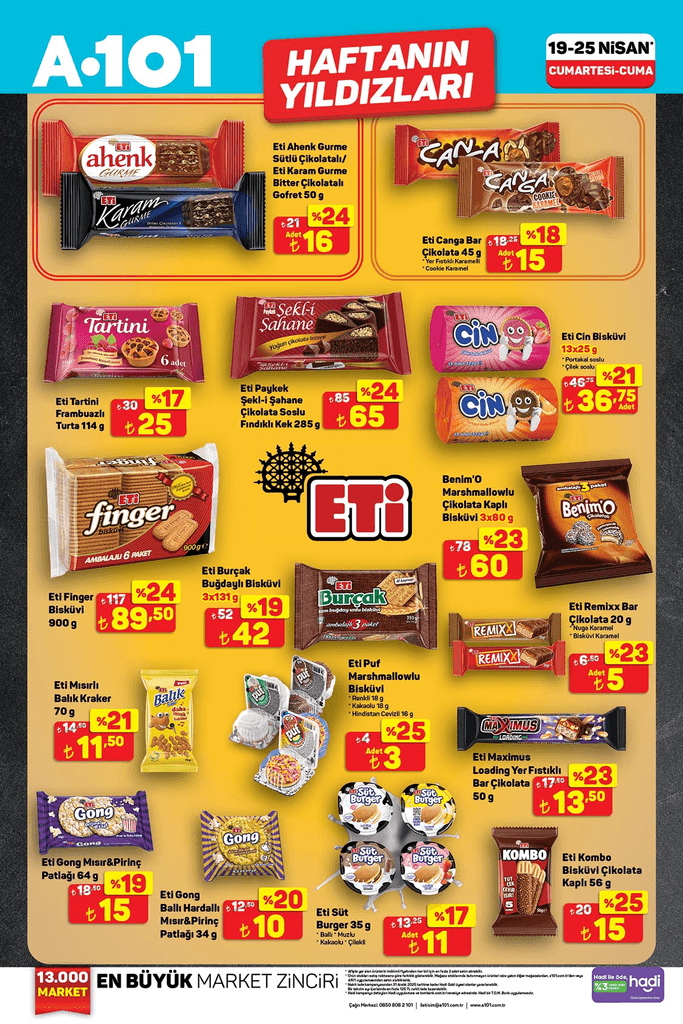 A101 19-25 NİSAN 2025 FİYAT LİSTESİ