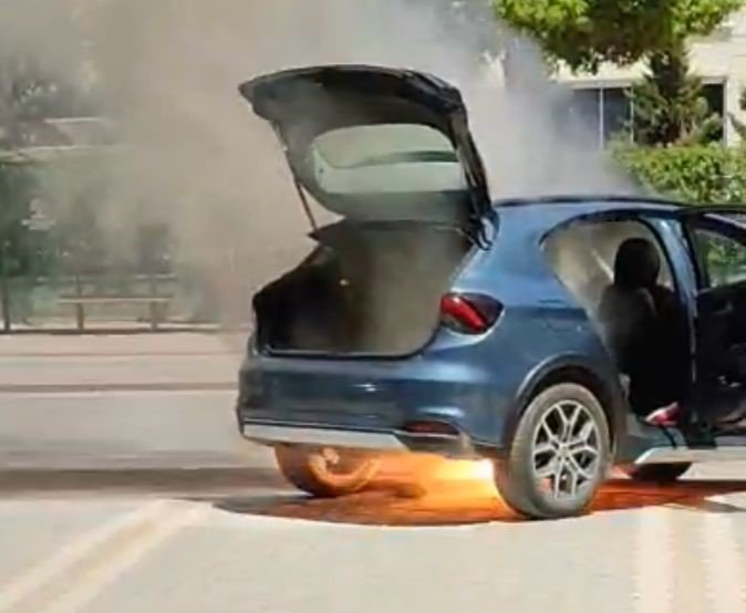 Yangının başlaması ve otomobilin yanması çevrede bulunan bir vatandaşın cep telefonu kamerasına yansıdı. Görüntülerde; otomobilin altından alevlerin çıkması, yangının büyümesi, çevredeki vatandaşların su ile müdahale etmeye çalışması ve otomobilden canlarını kurtaran kardeşlerin yerde oturması yer alıyor.