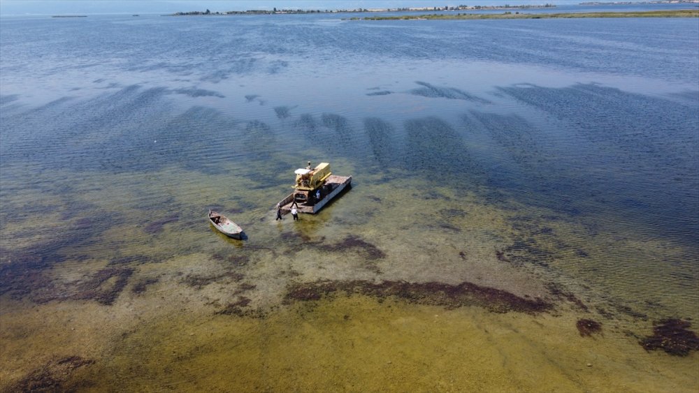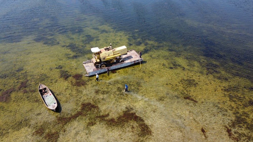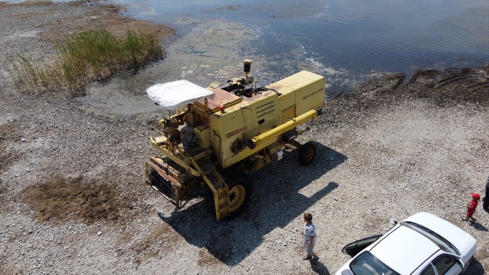 Çiftlik Mahallesi'nde yaşayan biçerdöverin sahibi çiftçi Mehmet Erdoğan, "Her yıl bu biçerdöverimizi adaya naklederek, ektiğimiz ürünleri biçiyoruz. 10-12 yıldır biçerdöverimizi bu mevsimde göl üzerinde yüzdürüyoruz. Hasadın sona ermesinin ardından biçerdöver, traktör ve diğer ekipmanlarımızı gölde duba üzerinde taşıyarak kışın yağmurda karda kalmasın diye evimize götürüyoruz." dedi.