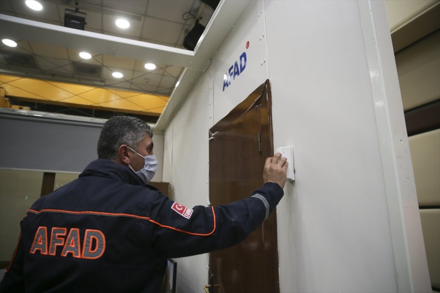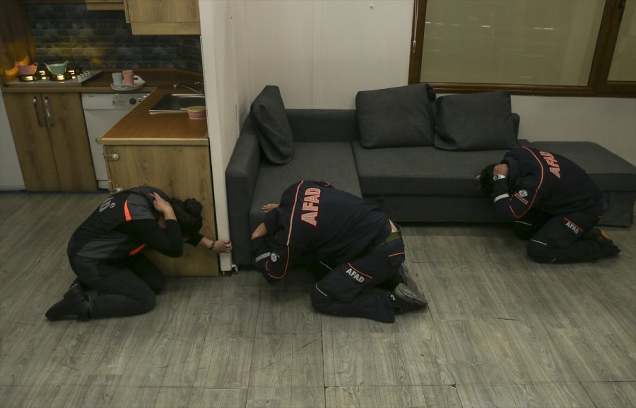 Afet ve Acil Durum Yönetimi Başkanlığı (AFAD) personeli, deprem anında yapılması gereken doğru davranışları deprem simülasyon merkezinde canlandırdı.