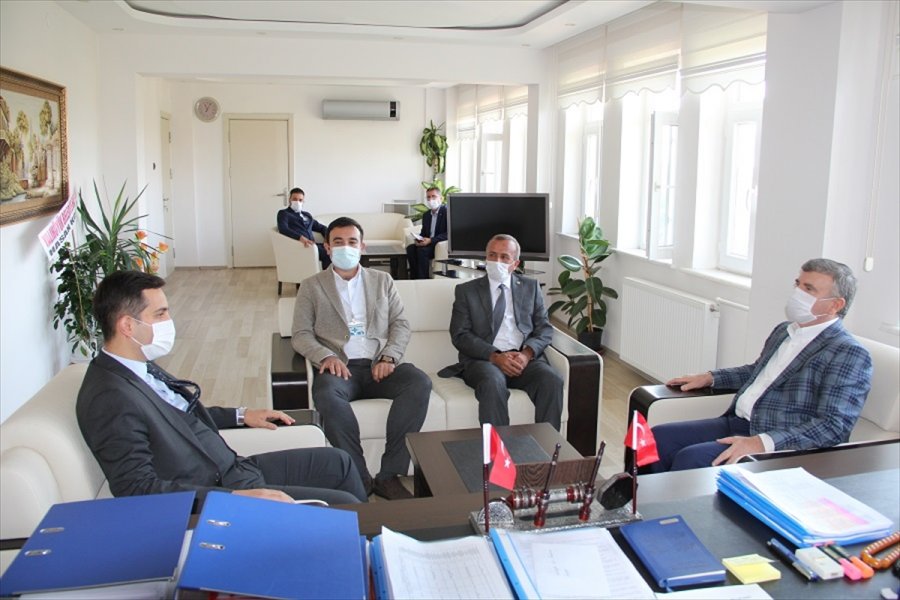 İlçe hakkında görüş alışverişinde bulunan Akyürek, Koçer ile Şahin'e çalışmalarında başarılar diledi.