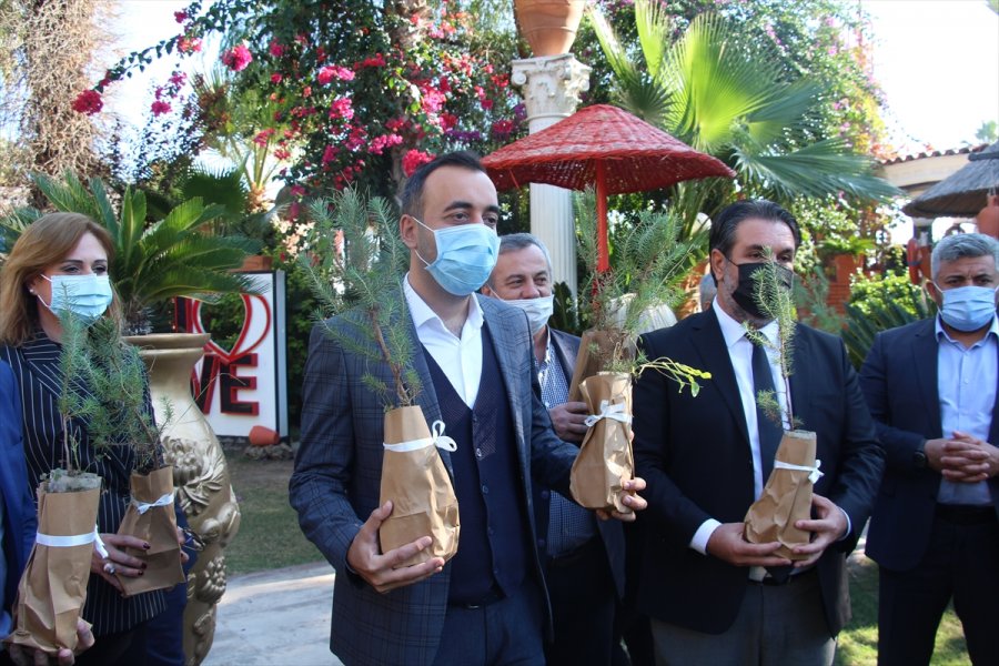 Toplantının ardından basın mensuplarıyla hatıra fotoğrafı çektiren Ülker, AK Parti Muratpaşa İlçe Teşkilatı adına katılımcılara fidan hediye etti.