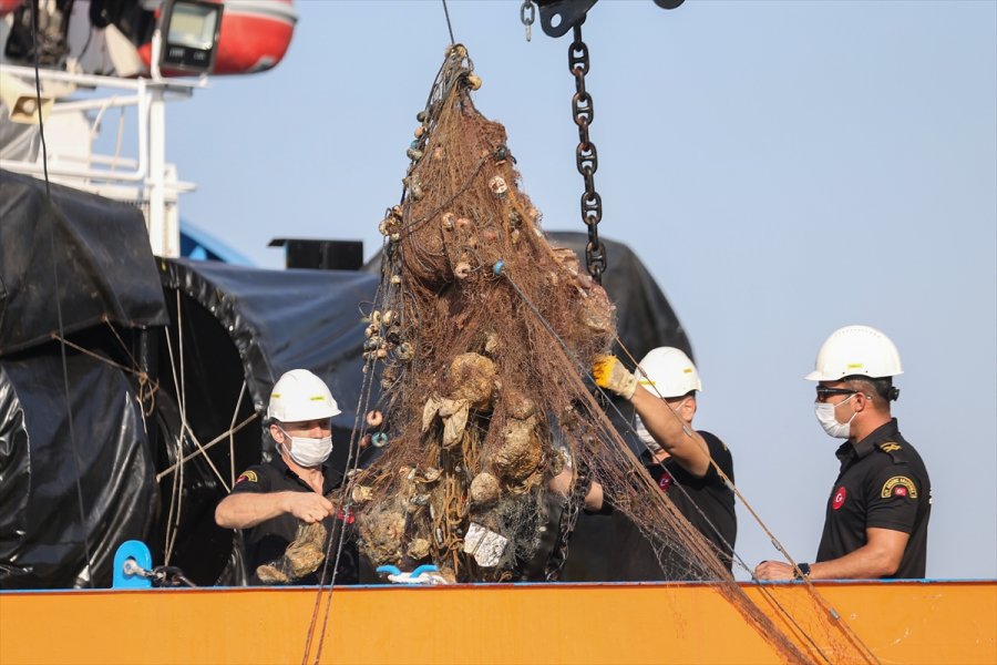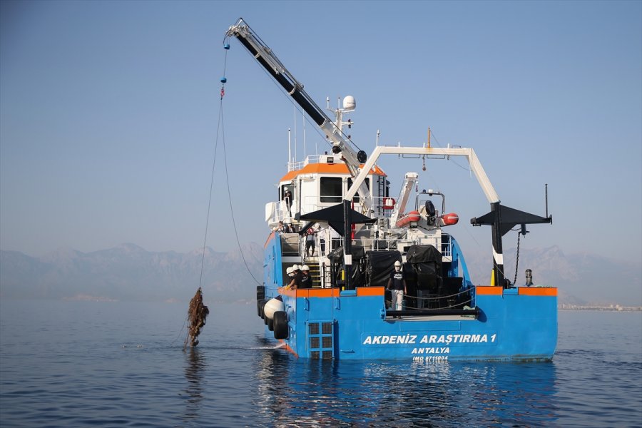 Akdeniz Su Ürünleri Araştırma, Üretme ve Eğitim Enstitüsü Müdürlüğü bünyesindeki Akdeniz Araştırma 1 Gemisi, uzun süre su altında kalan ve deniz canlılarına zarar veren "hayalet ağ" ile doğal yaşamı tehdit eden atıkları çıkarıyor