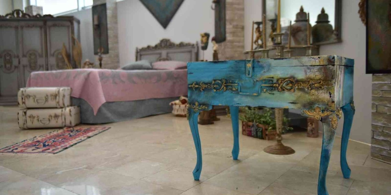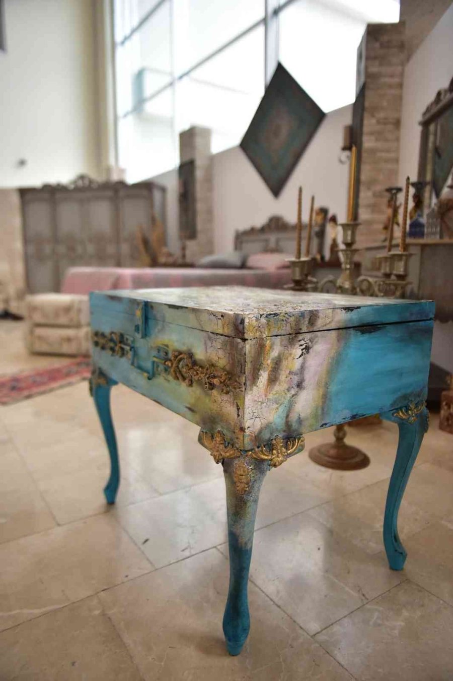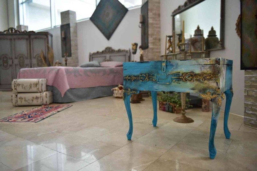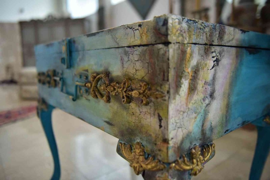 Antalya Kepez Meslek Eğitim Kursu'nun (AKMEK) Ahşap Boyama Bölümü kursiyerleri, 85 yıllık asker bavulunu sanatsal bir dokunuşla konsola çevirdiler.