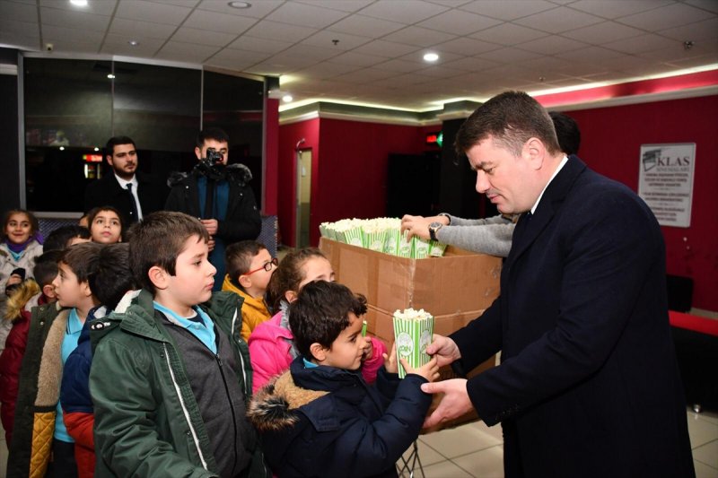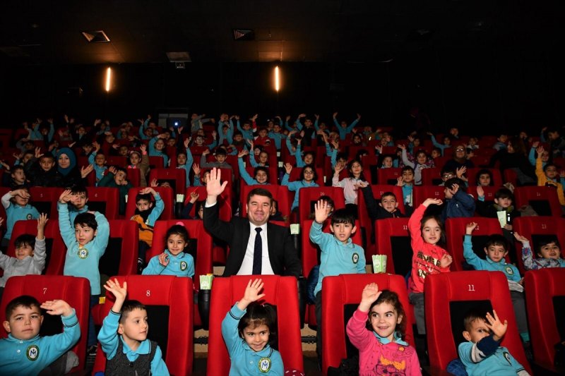 Aksaray Belediye Başkanı Evren Dinçer, "Rafadan Tayfa Göbeklitepe" filmini öğrencilerle birlikte izledi.
