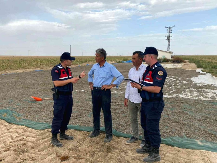 Aksaray'da kış dönemi tarım ürünlerinin hasadının başlamasıyla birlikte jandarma ekipleri meydana gelebilecek hırsızlık olaylarının önlenmesi amaçlı devriye görevinin yanı sıra tarım arazilerinde çiftçileri ziyaret ederek hırsızlığa karşı önlemler alıyor.