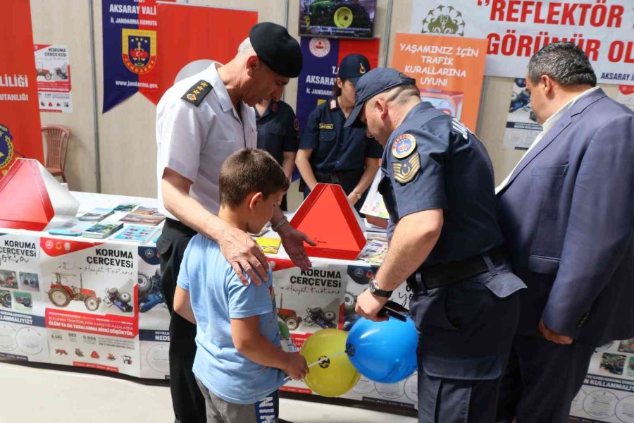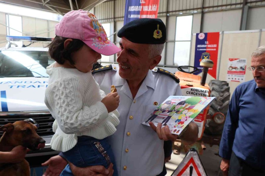 Aksaray'da düzenlenen 6. Uluslararası Tarım ve Hayvancılık Fuarı'nda jandarma standında çocuklara kitap dağıtan İl Jandarma Komutanı Hacı Ali Büber, jandarmanın faaliyetlerini anlattı.