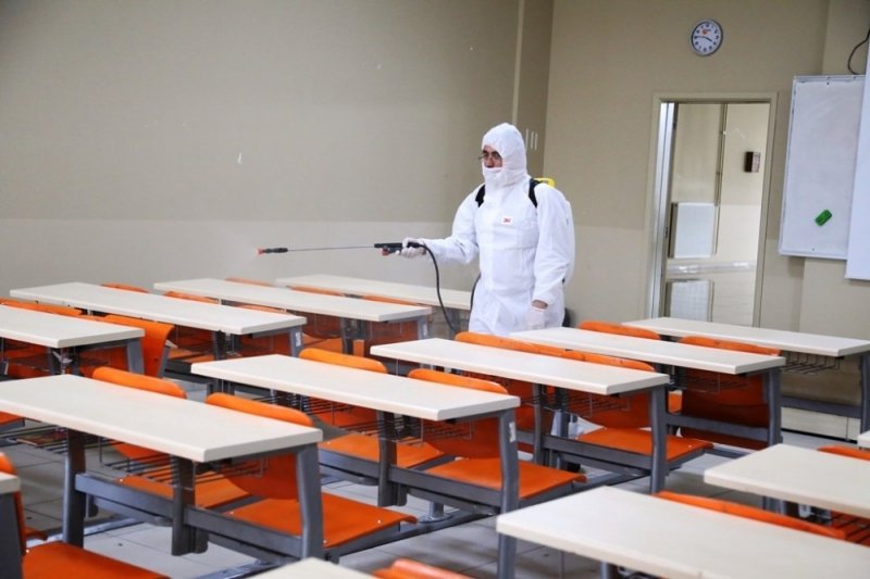 ASÜ bünyesinde oluşturulan ekipler, merkez kampüs ve ilçelerdeki okullarda sterilizasyon çalışmalarını yoğunlaştırdı. Bu kapsamda, toplu kullanıma açık olan mekânlar öncelikli olmak üzere, tüm bina ve kullanım alanları salgına karşı steril hale getiriliyor. 16 Mart 2020 tarihinden itibaren derslere ara verildiğini, bunun bir tatil değil, salgınla mücadele için bir yalıtım süreci olduğunu kaydeden ASÜ Rektörü Prof. Dr. Yusuf Şahin, "Tüm dünyayı etkisi altına alan salgınla alakalı olarak devletimizin aldığı tüm kararları dikkatle takip ediyoruz. Biz de, salgın riskini en aza indirebilmek için üzerimize düşen sorumlulukları yerine getiriyoruz. Sterilizasyon çalışmaları bu işin bir parçasını temsil ediyor. Oluşturduğumuz ekipler, belirlenen program dâhilinde, toplu kullanılan mekânlar başta olmak üzere diğer tüm noktalarda titiz şekilde hijyen çalışmalarını gerçekleştiriyor. Aksaray Belediyesi de bu çalışmalarımız kapsamında bizlere destek oluyor. Sayın Belediye Başkanımız Evren Dinçer nezdinde, tüm ekibine teşekkür ediyoruz" dedi.