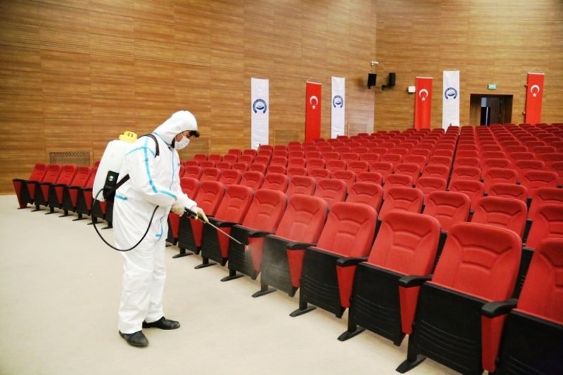 Aksaray Üniversitesinde (ASÜ) koronavirüs salgınına dair alınan önlemler kapsamındaki sterilizasyon çalışmaları devam ediyor.
