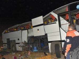 Aksaray’da polis eşliğinde sınır dışı edilecek mültecileri taşıyan otobüsün devrilmesi sonucu meydana gelen trafik kazasında 17’si polis 41 kişi yaralandı.