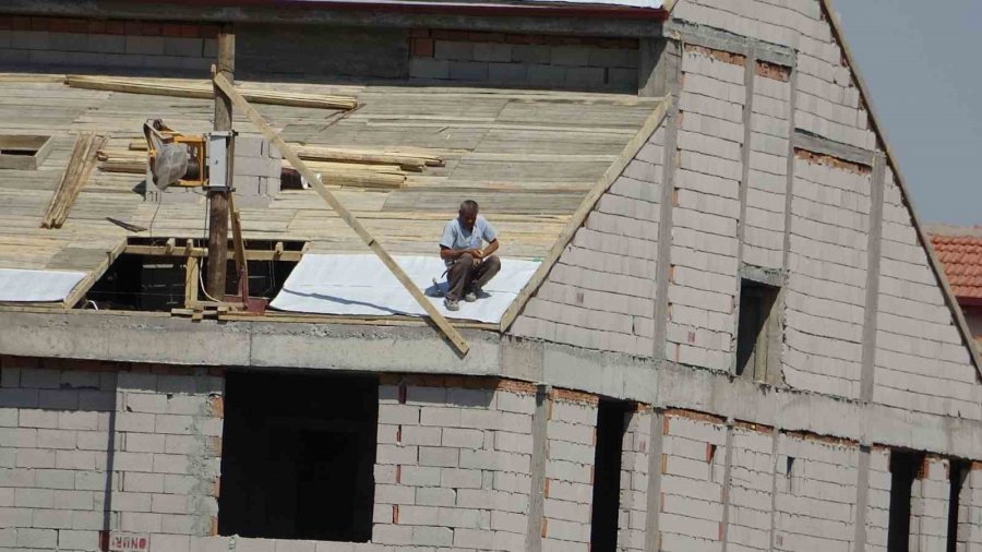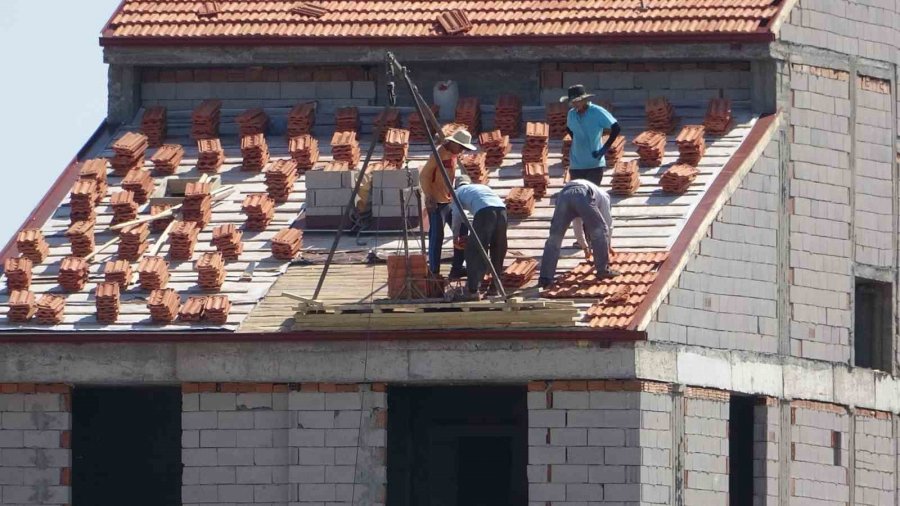 Aksaray'da hiçbir güvenlik önlemi almadan 5 katlı inşaat halindeki bir binanın çatı katında çalışma yapan inşaat işçileri görenleri hayrete düşürdü. Hacılar Harmanı Mahallesinde bulunan bir inşaatta kameraya yansıyan görüntülerde, eğimli bir çatıda hiçbir güvenlik önlemi almadan çalışan inşaat işçilerinin adeta canlarını hiçe saydığı görülüyor. Hava sıcaklıklarının 43 dereceye kadar ulaştığı Aksaray'da sıcaklıkların da getirebileceği olumsuzluklara rağmen tehlikeli çalışmayı sürdüren inşaat işçileri, zaman zaman çatının ucuna kadar gelerek zorlanarak çalıştı. Tüm bu yaşananlar kameralara yansıdı.