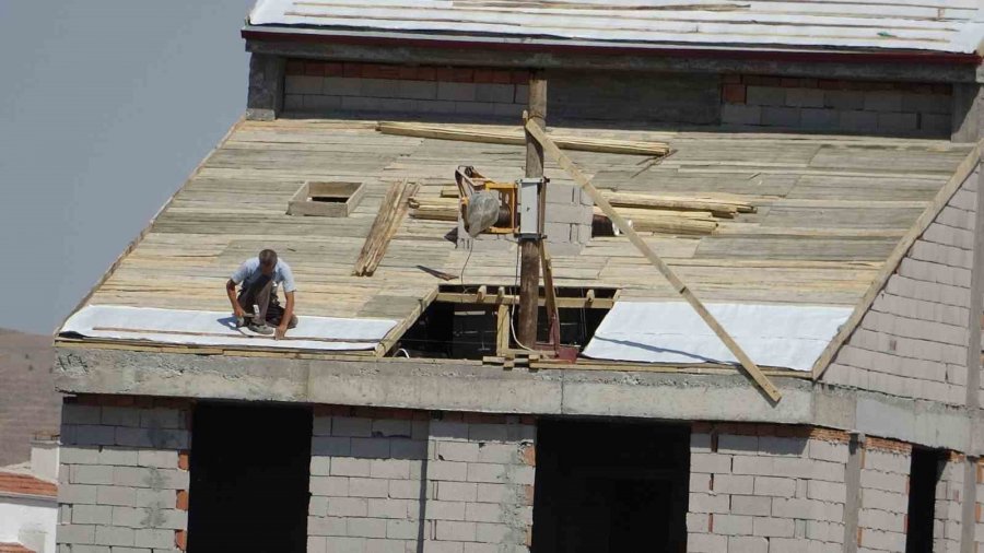 Aksaray’da 5 Katlı Binanın Çatısında Ölüme Meydan Okurcasına Çalıştılar