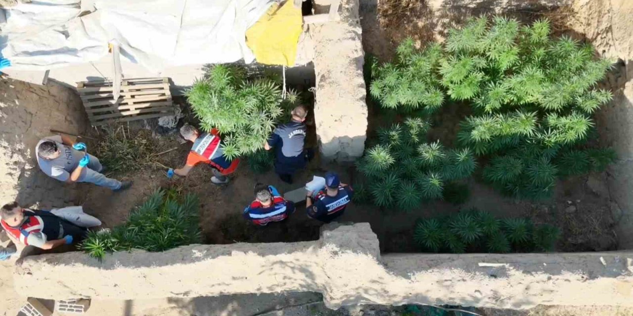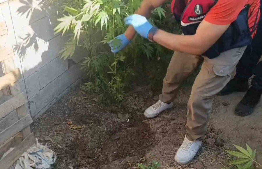 Aksaray'da evinin bahçesinde yasa dışı kenevir yetiştiren şahıs, jandarmanın dron destekli operasyonuyla yakalandı.