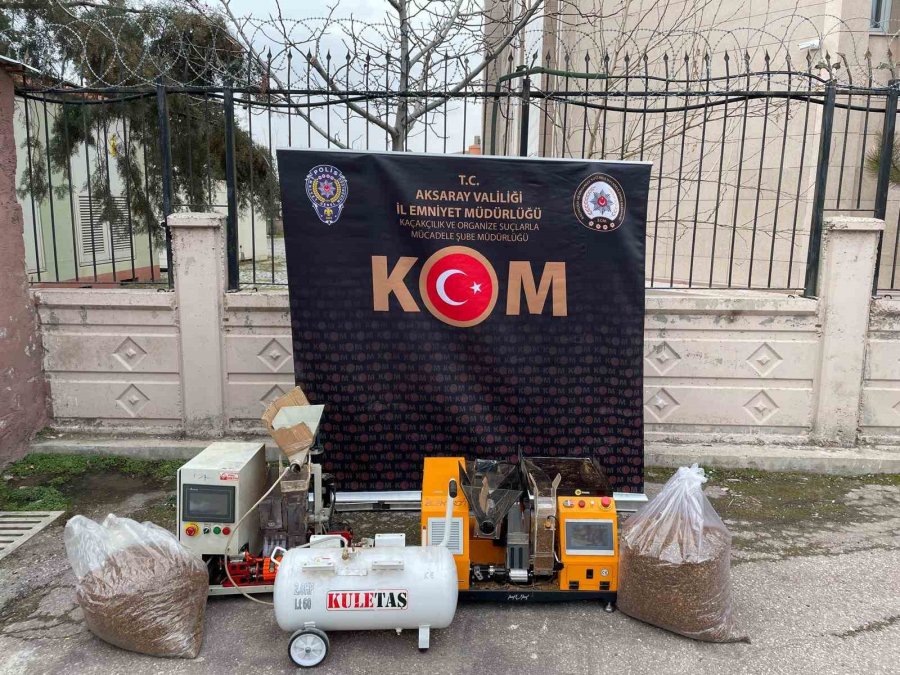 Aksaray'da kaçakçılığın önlenmesi için çalışmalar yapan İl Emniyet Müdürlüğü Kaçakçılık ve Organize Suçlarla Mücadele (NSM) Şubesi ekipleri, bir evde kaçak sigara hazırlanarak piyasaya sürüldüğü bilgisine ulaştı. Bunun üzerine Aksaray Cumhuriyet Başsavcılığı koordinesinde harekete geçen KOM ekipleri belirlenen adrese operasyon düzenledi. Gerçekleştirilen operasyonda odanın içinde dolap arkasında gizli bir geçit bulan polis ekipleri dolabı çekip gizli geçitten girince kaçak sigara imalathanesine ulaştı. Gizli bölmede 2 adet sigara sarma makinesi, 1 adet kompresör, 17 kilo kıyılmış tütün, 600 adet bandrolü kesilmiş makaron kutusu ve 696 adet kesilmiş bandrol ele geçirdi.