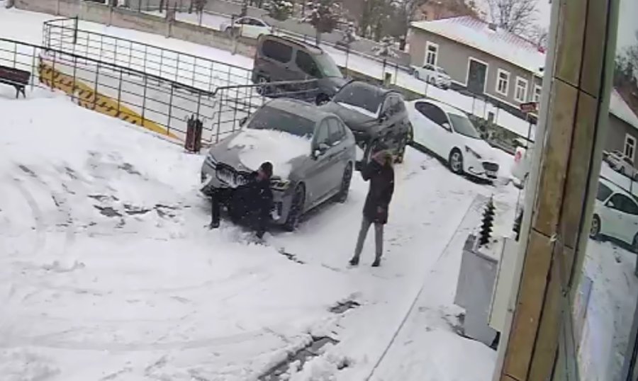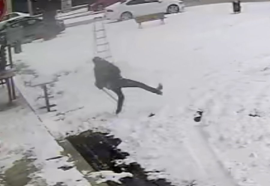 Aksaray’da etkili olan kar yağışı, kenti beyaz bir örtüyle kaplarken Eskil ilçesinde kayganlaşan zemin ilginç görüntülere sahne oldu. Bir iş yerinin güvenlik kameralarına yansıyan kayma ve düşme anları, her ne kadar korkutsa da izleyenlerin yüzünde tebessüm oluşturdu.