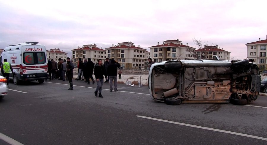 Aksaray'da Karşı Şeride Geçen Otomobil Takla Attı